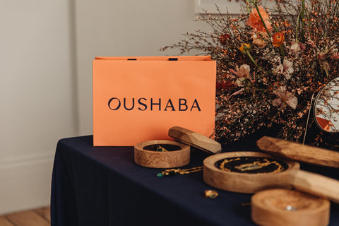 Honouring Oushaba’s commitment to sustainability, Oushaba's packaging is plastic-free and foam-free. Our carrier bags are made from recycled materials and are biodegradable. Our tissue paper, boxes and stickers are 100% recyclable and compostable, created using FSCcertified materials and soy-based inks.