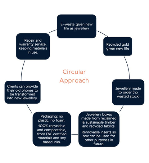 With circularity at our heart, customers can commission bespoke jewellery using components from their own old mobile phones, breathing new life into objects that were once the gateway to important relationships.